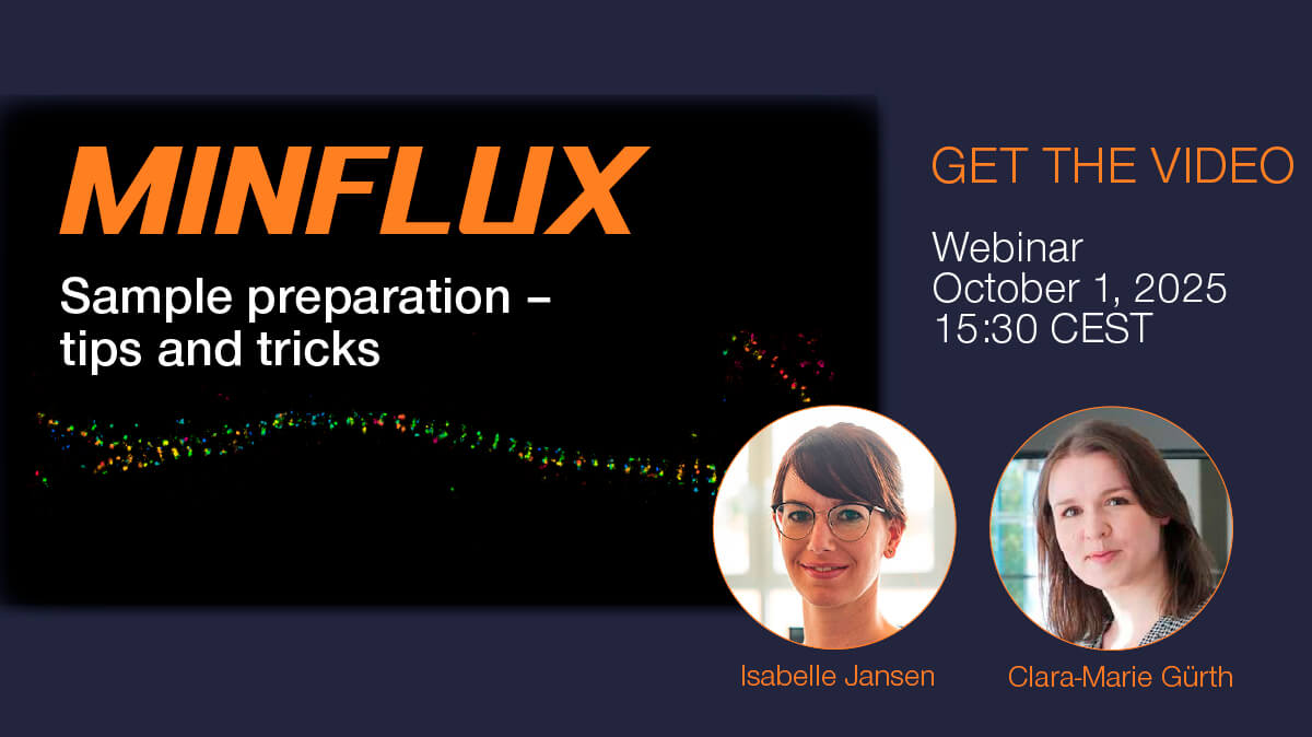 MINFLUX is a powerful microscopy technology to image and track molecules with highest spatial and temporal resolution. To achieve good results, however, there are some things to consider during sample preparation. In our webinar, we show you how do to it! Join our application specialists Isabelle Jansen and Clara-Marie Gürth and learn how sample preparation for MINFLUX works, how the choice of dye and labeling technique influence the result, and more tips and tricks.